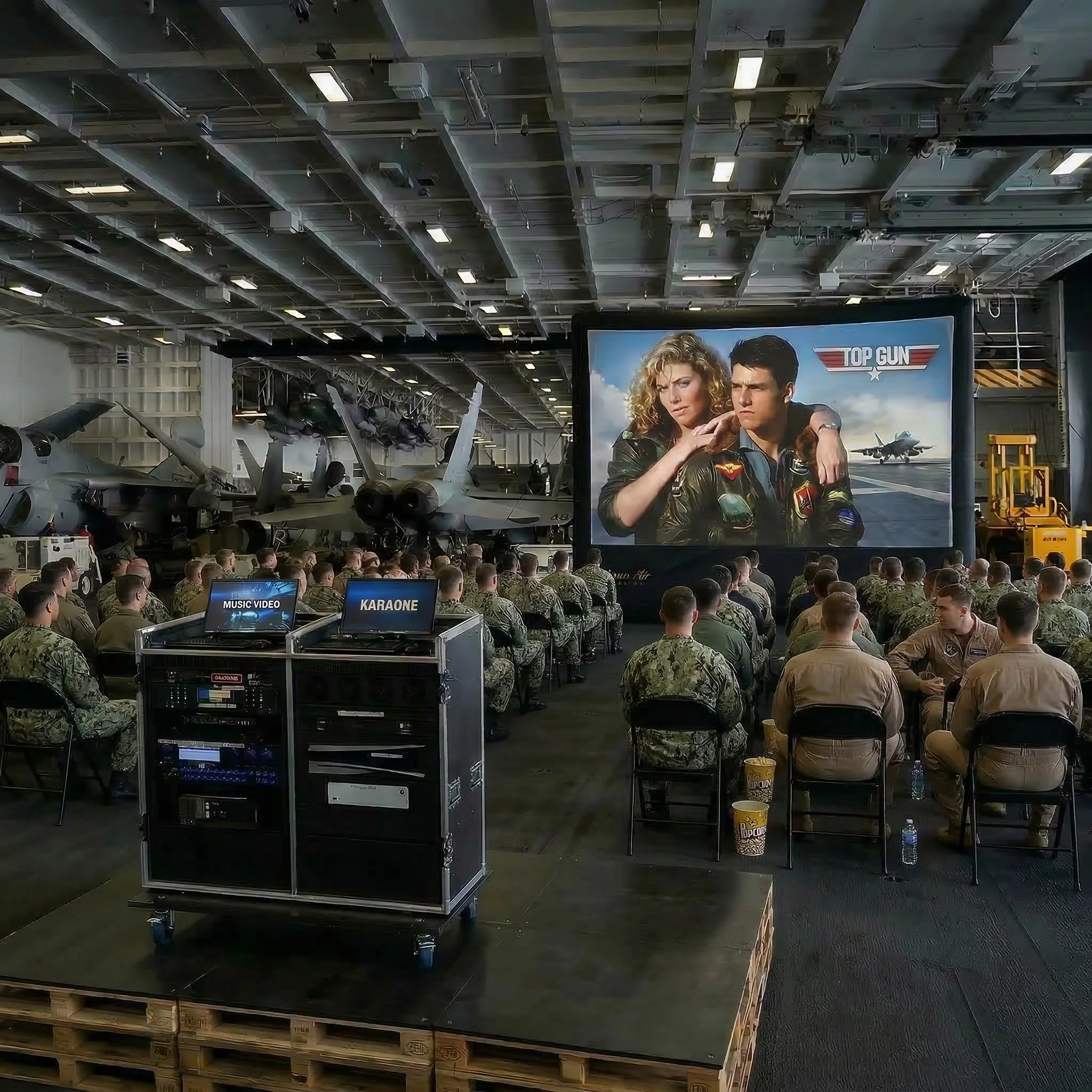 In addition to movie nights this AV system can be used to provide presentations, trainings, and briefings. It also forms the base for all of the other entertainment offerings included in the Big Time Deployment Bundle.
